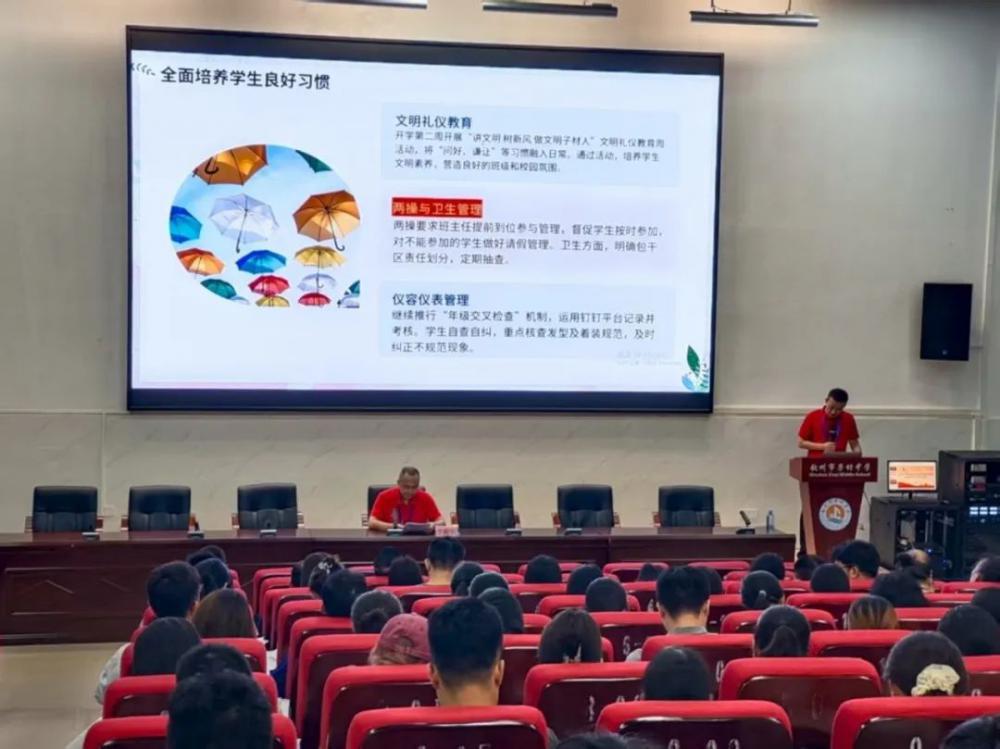 他还提出,要从 “重点整治、习惯培养、心理关怀” 三个维度发力,班主任正是这三个维度工作的关键执行者。通过精细化管理,将德育工作融入班级管理的每一个环节,促进学生全面发展。同时,要明确安全管理责任,将学生安全教育放在班级管理的核心位置,持续开展安全教育,全面排查安全隐患,定期开展应急演练活动,提升学生的应急能力。