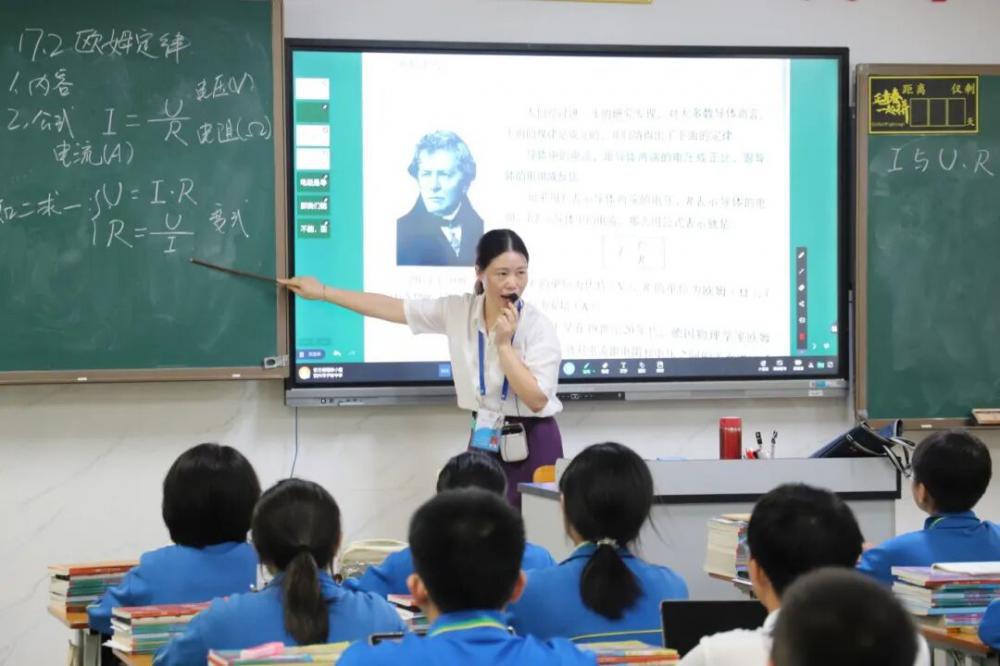本次视导以"视为教学助力,导作科研引领"为主题。上午8:55起,视导组专家深入初中课堂进行观摩,先后听取了八年级语文《记承天寺夜游》、数学《等腰三角形》、九年级物理《欧姆定律》等课程。各学科教师充分运用"子材AI智学平台"开展教学,展现了信息技术与课堂教学的深度融合。