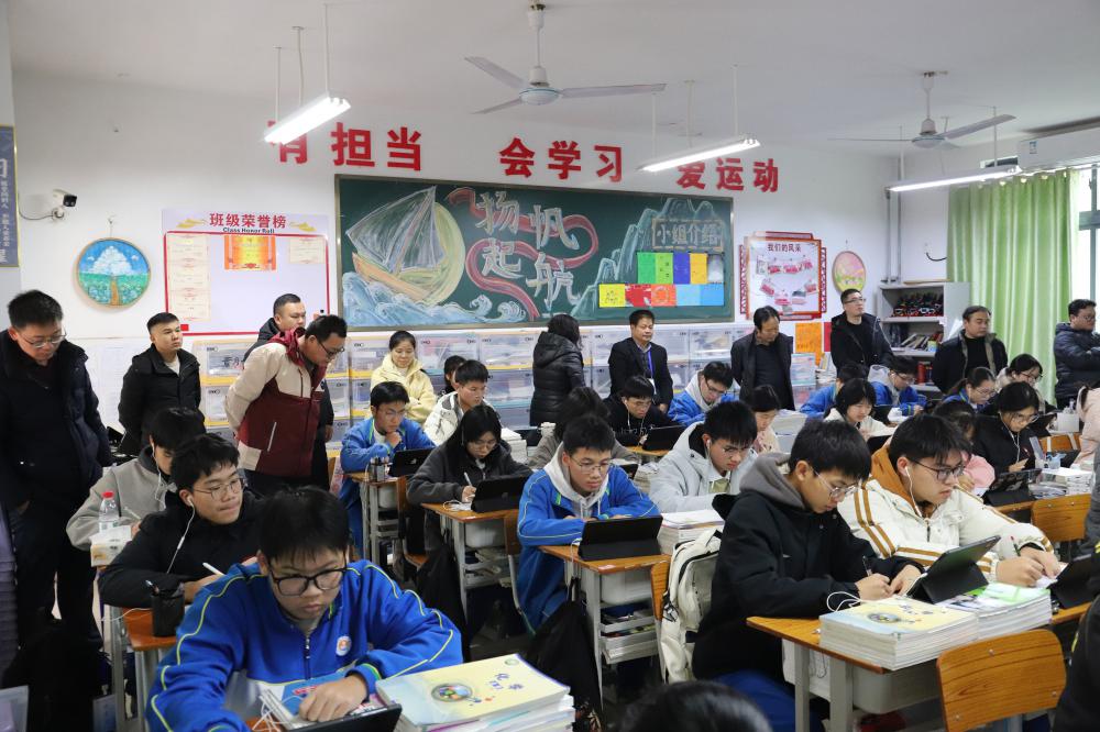 当日15:00,考察团如约抵达,子材中学校领导班子在门口致以诚挚欢迎,双方亲切会面后,考察团在陪同人员引导下参观校园。先后走访食堂、宿舍、教学区等核心区域,直观感受子材中学优美的校园环境、浓厚的育人氛围及完善的办学设施,对学校规范化的管理体系和鲜明的办学特色给予高度认可。 随后,考察团前往高一A+班观摩由山东大学毕业生李兴健老师执教的AI赋能示范课。授课教师以娴熟的教学技巧、丰富的互动设计展现了AI高效课堂的风貌,彰显了子材中学在教学实践中的扎实功底。课堂上师生高效互动、教学目标精准落地,赢得考察团成员的一致好评。 16:20,双方座谈交流会在子材中学图书综合楼六楼党员活动室正式召开,会议由子材中学执行校长张生龙主持。会上,张生龙校长首先致欢迎词,对考察团的到来表示热烈欢迎,并从学校发展历程、师资建设、教学成果等方面详细介绍了子材中学的整体办学情况。 座谈核心环节,广西大将集团董事会主席李荣坚详细介绍了大将集团的办学历程,回顾了在教育教学领域的深耕经验,与品质提升的关键举措,并就AI赋能教学的探索表达了愿望。子材中学领导详细介绍了我校开展AI赋能教学以来取得的成效,并就我校自主开发“子材AI智学平台”相关事宜进行了介绍。两校领导的交流坦诚深入、共识不断凝聚,为后续开展多元化校际合作奠定了坚实基础。 此次考察交流活动,不仅是双方增进了解、深化友谊的重要契机,更搭建了校际合作的坚实桥梁。通过实地观摩与深度研讨,双方在合作发展上达成广泛共识。未来,钦州市子材中学将与广西大将集团旗下各校持续加强沟通联动,探索更多元化的合作模式,实现资源共建共享、优势互补,携手为区域教育高质量发展注入新动能、谱写新篇章。