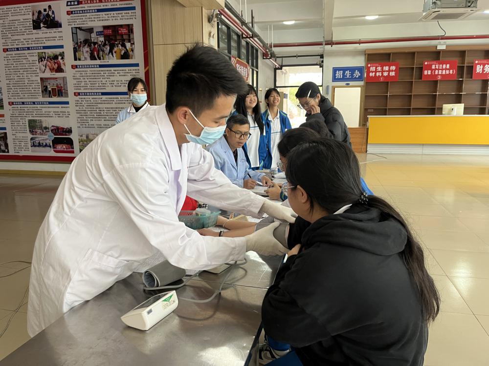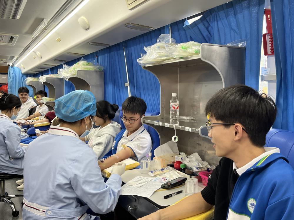 一大早,爱心献血活动现场就井然有序地忙碌起来。行政楼门前的献血车鲜红醒目,“献血救人· 助人益民”的标语格外暖心。同学们怀揣着激动与认真,先是在登记处仔细填写献血登记表,一笔一划间,是对这份公益行动的郑重;医护人员耐心地为大家测量血压、进行血液检测,细致的检查既保障了献血者的健康,也为献血流程筑牢安全防线。