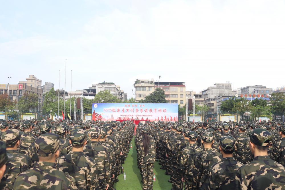 金秋送爽,丹桂飘香。8月22日上午,钦州市子材高级中学2025级新生军训动员大会在学校隆重举行。学校领导、承训教官团队、高一全体班主任及新生共同参加了本次大会。2025级新生通过军训磨练了意志、增强了体魄、收获了友谊,以铿锵步伐踏上新征程,以青春汗水书写荣光!