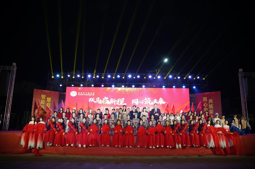 岁序更替,华章日新。2025年12月30日晚,钦州市子材中学灯火璀璨、欢声如潮,以“跃马启新程,同心筑未来”为主题的2026年元旦晚会在全校师生的热切期盼中盛大举行。学校理事长及理事,校长陈静兴、执行校长张生龙等校领导与其他一些学校特邀嘉宾及全体师生欢聚一堂,用歌声、舞蹈与欢笑告别硕果累累的2025,共同迎接充满希望的2026。
