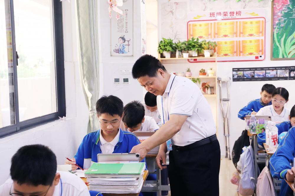 课间的校园里,他的脚步从未停歇。为助力年轻教师快速成长,他坚持“推门听课”,不打招呼、直击真实。课后,他与青年教师促膝长谈,细致点评,倾囊相授。