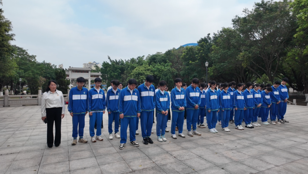 下午15:30,师生代表身着整齐校服,神情庄重,肃立于牛圩坡革命烈士纪念碑前。巍峨的纪念碑在春日映照下更显肃穆,仿佛诉说着那段烽火岁月。 祭扫仪式上,党总支周玲副书记现场致辞。她带领大家重温革命岁月,缅怀先烈们视死如归、把国家和人民利益置于一切之上的崇高精神。她强调,今天的祭扫不是一项简单的任务,而是一堂“行走的思政课”。在先烈与英雄的身上,蕴藏着子材中学校园文化的根与魂。作为子材人,我们应当传承英雄精神,践行先辈遗志,以实际行动做好本职工作,努力做到为党育人、为国育才。 随后,团员代表发言,表达了对革命先烈的无限敬仰和继承遗志、奋发图强的坚定决心。 学校执行校长张生龙、副校长庞凤莲代表全校师生向烈士纪念碑敬献花圈,并细心整理缎带。全体党员教师在党旗下庄严举起右拳,重温入党誓词,铿锵誓言在纪念碑前久久回荡,彰显着对党忠诚、初心不改的坚定信念。 全场肃立默哀一分钟,向为民族解放与国家安宁英勇献身的革命先烈致以最深切的悼念。随后,团员代表依次敬献鲜花,以虔诚之举寄托哀思、致敬忠魂。 仪式结束后,全体师生绕行瞻仰纪念碑,在静默中感悟革命精神,接受心灵的深刻洗礼。 祭扫烈士陵园后,师生们又前往冯子材故居,通过史料讲解与实景参观,重温民族英雄捍卫家国、抵御外侮的光辉事迹。冯子材、刘永福等先辈炽热的家国情怀与不屈的民族气节,深深感染着在场的每一位师生。作为以英雄命名的子材中学,师生们更感责任在肩,立志将英雄精神内化于心、外化于行。 英雄虽逝,精神永存。是他们用鲜血铸就了我们今天美丽的城市,换来了我们国家的安宁。清明之际,我们献上最崇高的敬意,也许下最坚定的誓言。 此次清明祭扫活动,既是一堂行走的思政课,也是一次深刻的爱国主义教育。师生们在追思中汲取力量,在传承中坚定信念。子材人将以先烈和英雄为榜样,把缅怀化为奋进的动力,立足岗位、勤学笃行,让英雄精神在校园里生生不息,让红色基因代代相传。