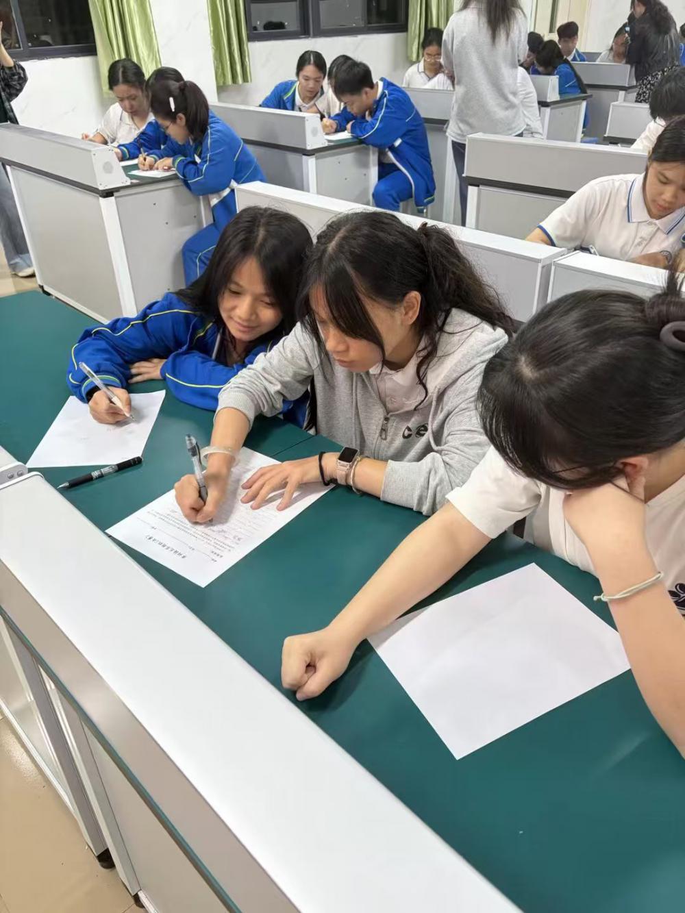 评委老师们全程专注,严格按照评分标准现场批改、实时计分,细致记录每一组的表现,确保比赛结果公平、公正、公开。