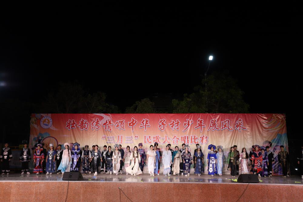 春风拂壮乡,欢歌满校园。为弘扬中华优秀传统文化,厚植家国情怀,促进民族团结进步,4月15日晚上,钦州市子材中学2026年“三月三”民歌大合唱比赛决赛在学校田径场盛大举行。本次活动以“壮韵传情颂中华,子材少年展风采”为主题,历经3月23日至26日分年级预赛层层选拔,最终17个优秀班级脱颖而出晋级决赛,全校师生齐聚赛场,以嘹亮合唱传承民族文脉,以青春风采礼赞伟大时代。