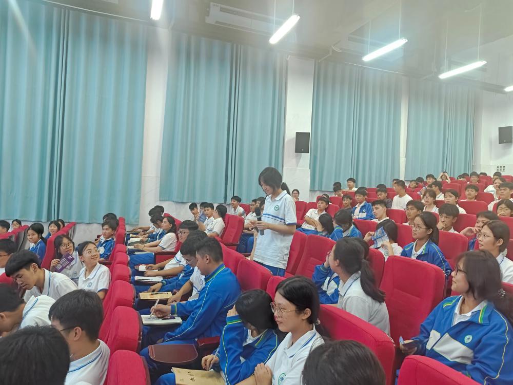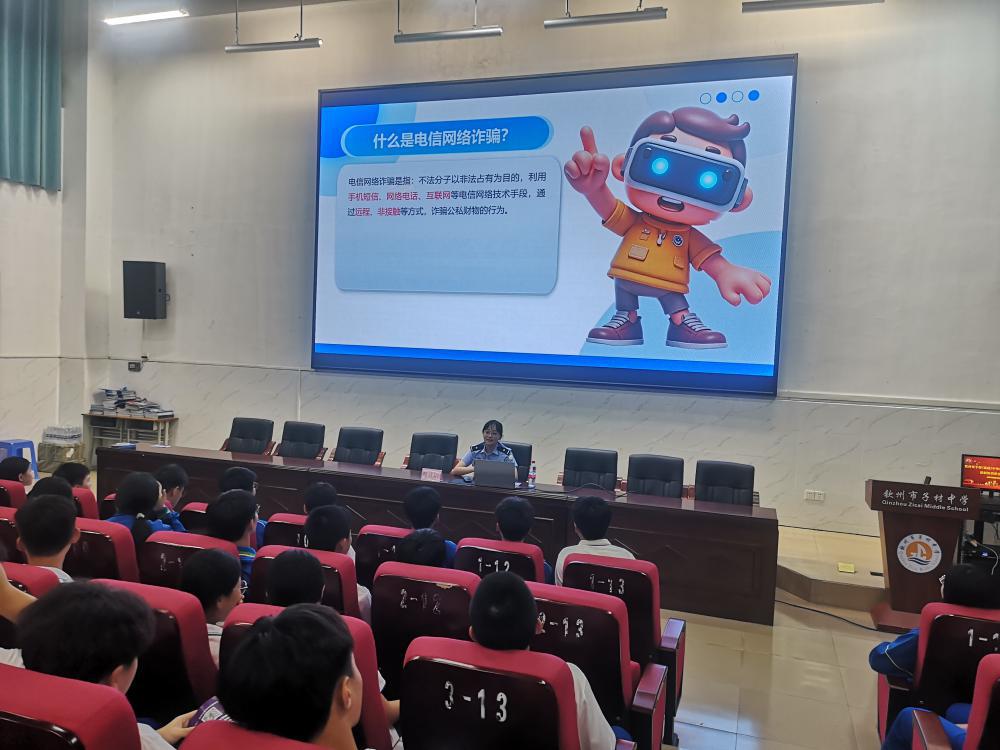 为进一步增强同学们的法治意识和自我保护能力,营造安全、和谐、文明的校园环境,9月10日,我校特邀钦北公安分局民警叶佳玥走进校园,开展了一场以“平安校园,与警同行”为主题的安全教育讲座。讲座由政教处副主任潘丽妃主持,现场互动频频,气氛热烈。
